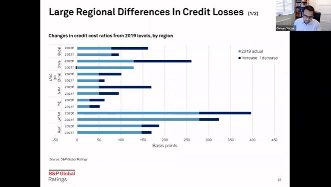 Osman Sattar, Director of EMEA Financial Institutions for S&P Global Ratings, forecasts global credit losses will surpass US $2 trillion due to the pandemic—with banks and credit unions in western Europe and North America facing the biggest percentage increase in losses compared to 2019.